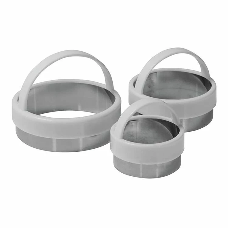 | Features | Easy handle for a more comfortable cut3 sizes for varied use: 7cm, 6cm, 4cmCuts scone dough without sticking |