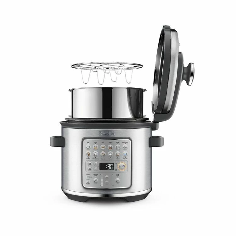 With an easy to use interface and 14 shortcuts and appliance settings, with the Breville The Fast Slow Go Pressure Cooker BPR680BSS you’re just a click or two away from a variety of delicious dishes. Now you can pressure cook, slow cook, sauté, steam, stew, make risotto, yoghurt and sous vide and so much more, all with a single cooker.
