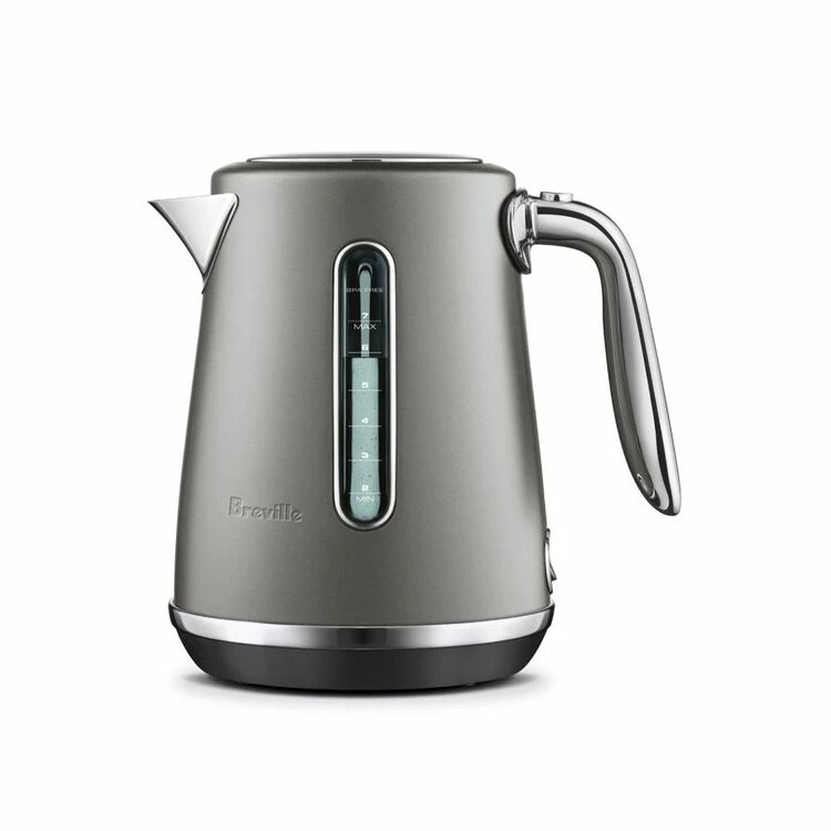 The Breville The Soft Top Luxe Kettle Oyster Grey BKE735OYS includes a soft open lid to stagger hot steam and prevent hot water splash back. Constructed with brushed stainless steel in premium metallic finishes and chrome accents using BPA Free materials, this is the perfect modern appliance for your kitchen.