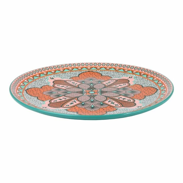 Add a stunning Middle Eastern touch to your table with the Casa Domani Pelagie Round Serving Platter. Crafted from durable and lightweight ceramic, this gorgeous platter features a Teal and terracotta design exclusive to Casa Domani. Ideal for entertaining indoors or outdoors, the Pelagie Round Serving Platter will add charm to your tablescape. Coordinate it with the matching Pelagie dinnerware and ceramic servingware for an effortless finish.
