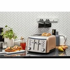 Somewhat industrial yet strikingly modern, the Russell Hobbs Brooklyn 4-Slice Toaster Black blends style and sophistication with understated functionality. Featuring a brushed stainless steel front and champagne black housing, this Brooklyn Toaster will add style to any kitchen design. With multiple functions, settings and browning controls, adjust to get your perfect morning toast!