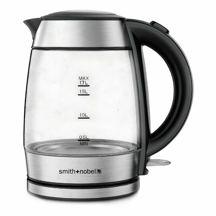 Modern, reliable, and with a sleek stainless steel trim, the Smith & Nobel Glass Kettle Stainless Steel combines kitchen style with understated functionality. It features an easy to use cordless design with a 360° rotating base for right and left hand users, as well as an illuminated base light and LED on/off switch. Brew your morning tea or coffee with this Smith & Nobel Glass Kettle!